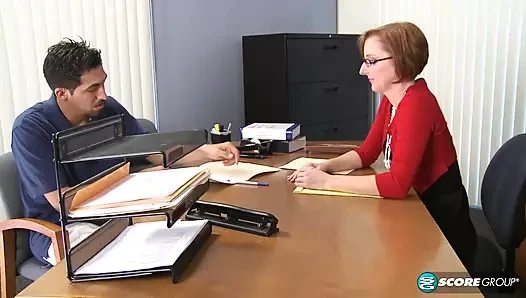 Bos wanita rambut keriting menghukum sekretarisnya yang sange dengan pemujaan kaki sensual